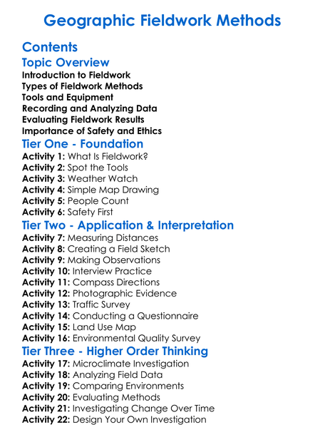 Geographic Fieldwork Methods Worksheet Activity Booklet