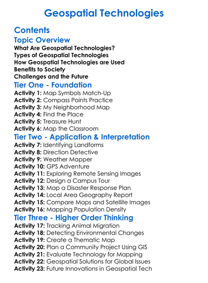 Geospatial Technologies Worksheet Activity Booklet