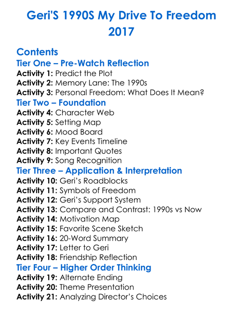 Geris 1990S My Drive To Freedom 2017 Worksheet Activity Booklet