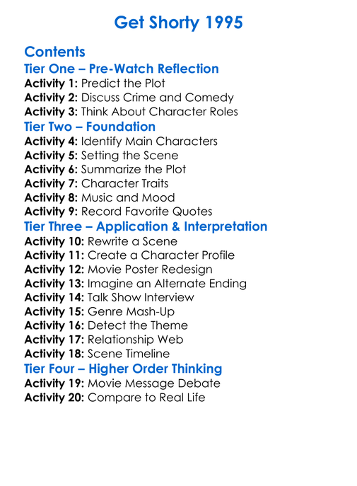 Get Shorty 1995 Worksheet Activity Booklet