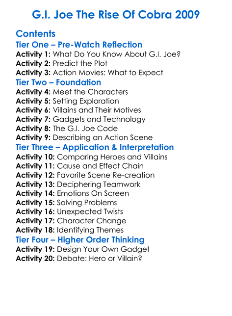 Gi Joe The Rise Of Cobra 2009 Worksheet Activity Booklet
