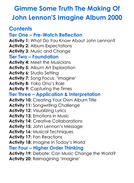 Gimme Some Truth The Making Of John Lennons Imagine Album 2000 Worksheet Activity Booklet