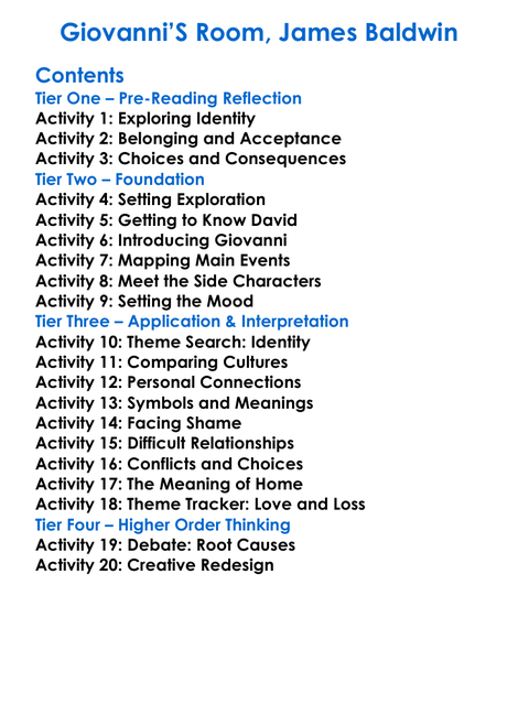 Giovannis Room James Baldwin Worksheet Activity Booklet