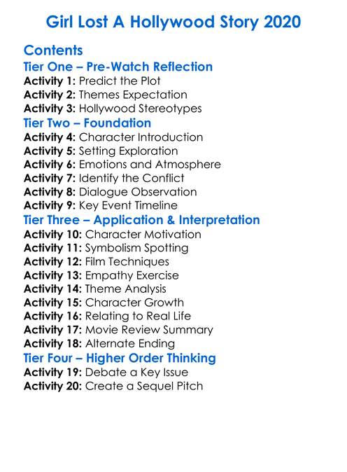 Girl Lost A Hollywood Story 2020 Worksheet Activity Booklet