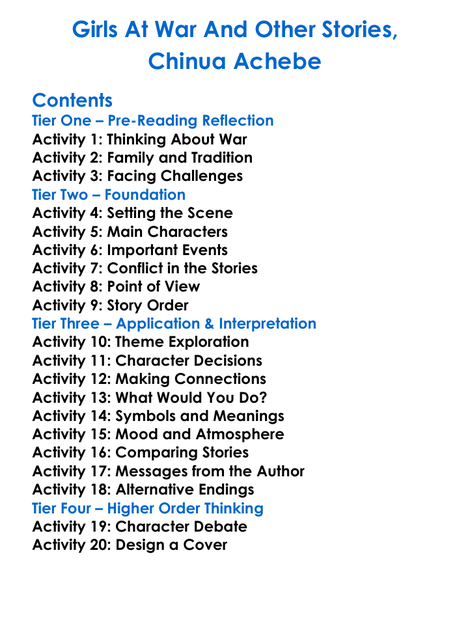 Girls At War And Other Stories Chinua Achebe Worksheet Activity Booklet