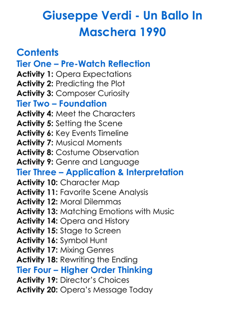 Giuseppe Verdi Worksheet Activity Booklet
