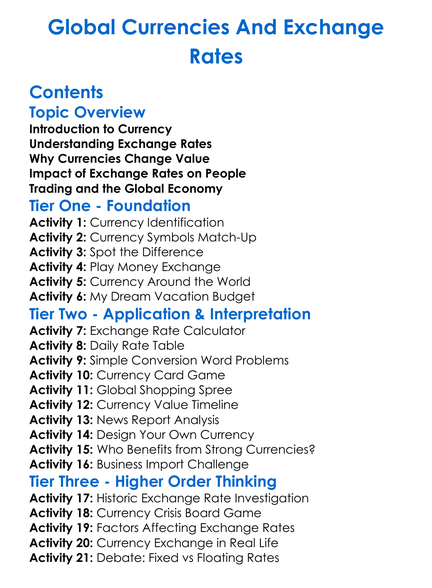 Global Currencies And Exchange Rates Worksheet Activity Booklet