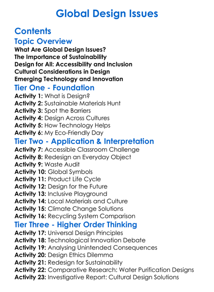Global Design Issues Worksheet Activity Booklet