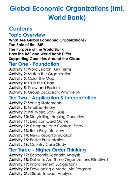 Global Economic Organizations Imf World Bank Worksheet Activity Booklet