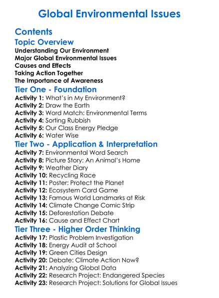 Global Environmental Issues Worksheet Activity Booklet