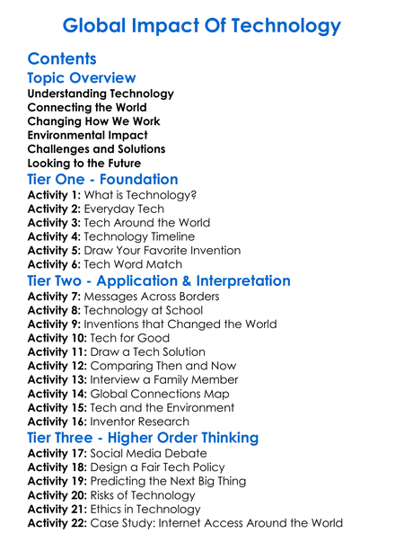 Global Impact Of Technology Worksheet Activity Booklet
