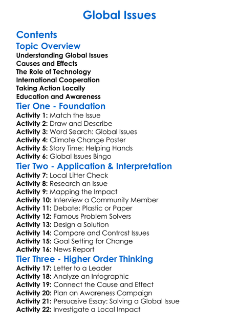 Global Issues Worksheet Activity Booklet