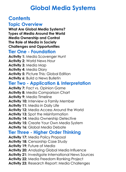 Global Media Systems Worksheet Activity Booklet