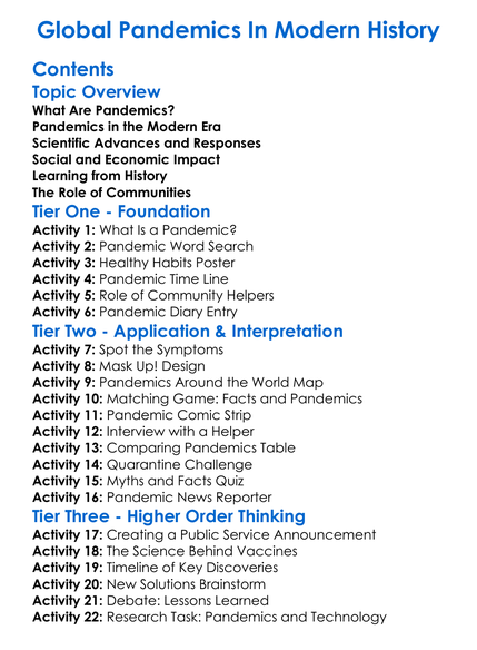 Global Pandemics In Modern History Worksheet Activity Booklet