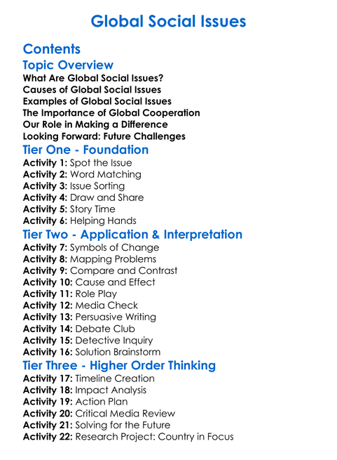 Global Social Issues Worksheet Activity Booklet