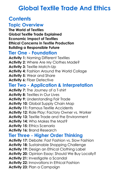 Global Textile Trade And Ethics Worksheet Activity Booklet