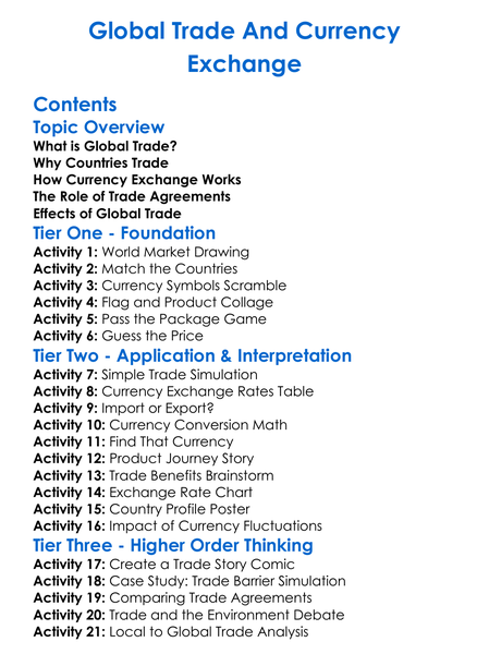 Global Trade And Currency Exchange Worksheet Activity Booklet