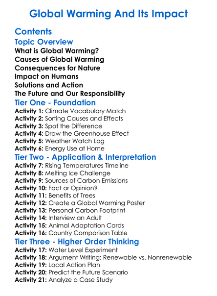 Global Warming And Its Impact Worksheet Activity Booklet