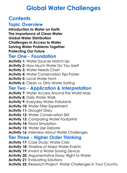Global Water Challenges Worksheet Activity Booklet