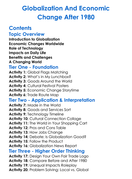 Globalization And Economic Change After 1980 Worksheet Activity Booklet