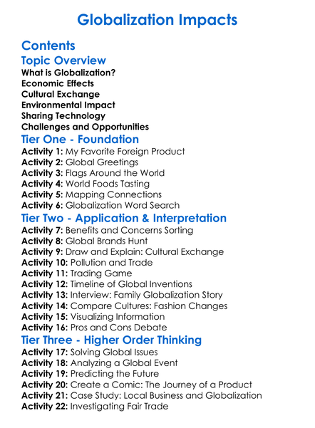 Globalization Impacts Worksheet Activity Booklet
