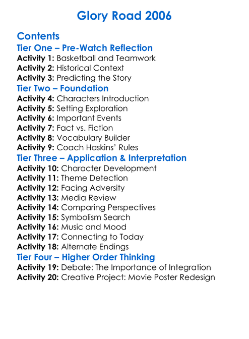 Glory Road 2006 Worksheet Activity Booklet