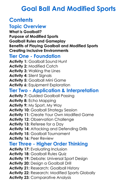 Goal Ball And Modified Sports Worksheet Activity Booklet