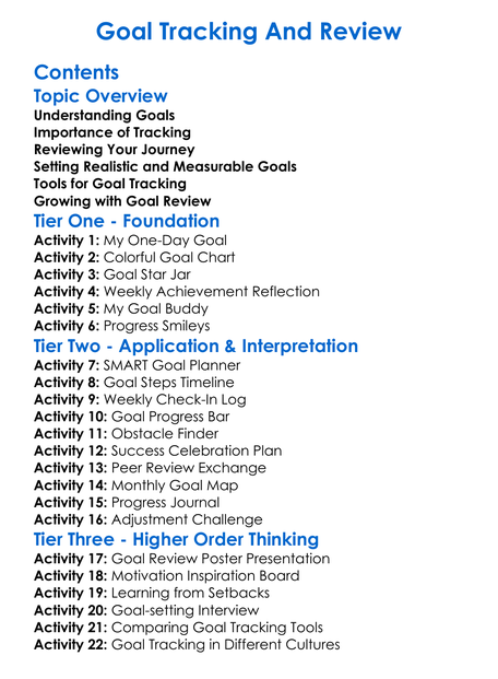 Goal Tracking And Review Worksheet Activity Booklet