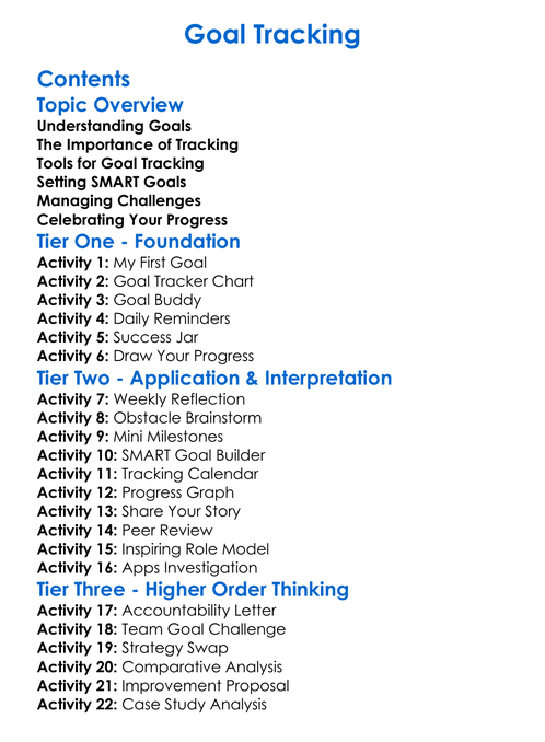 Goal Tracking Worksheet Activity Booklet