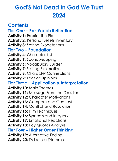 Gods Not Dead In God We Trust 2024 Worksheet Activity Booklet