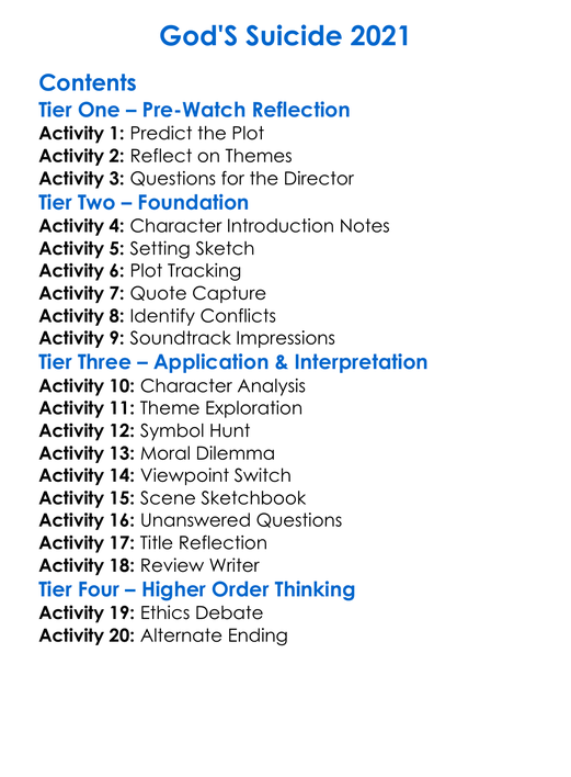 Gods Suicide 2021 Worksheet Activity Booklet