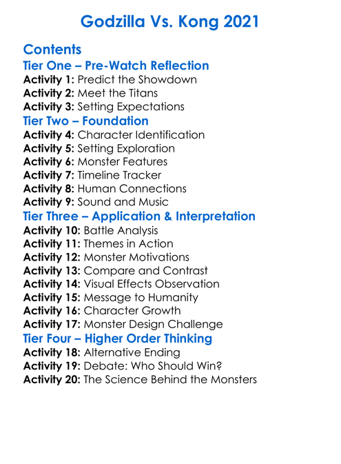 Godzilla Vs Kong 2021 Worksheet Activity Booklet