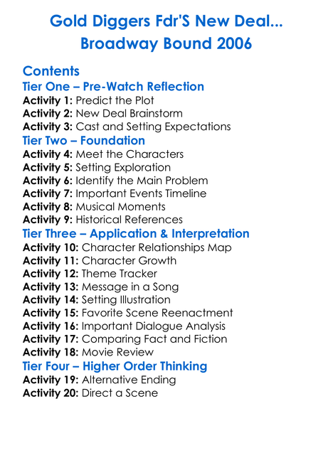 Gold Diggers Fdrs New Deal Broadway Bound 2006 Worksheet Activity Booklet