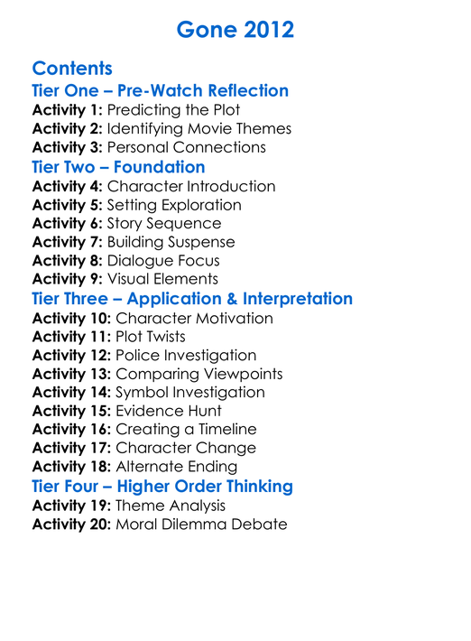 Gone 2012 Worksheet Activity Booklet