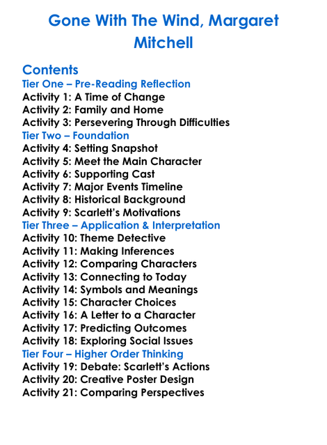Gone With The Wind Margaret Mitchell Worksheet Activity Booklet