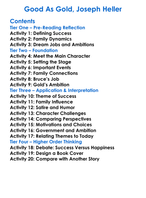 Good As Gold Joseph Heller Worksheet Activity Booklet