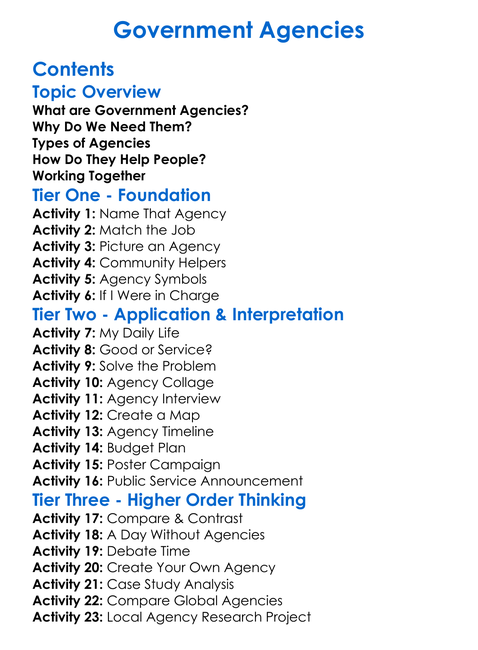 Government Agencies Worksheet Activity Booklet
