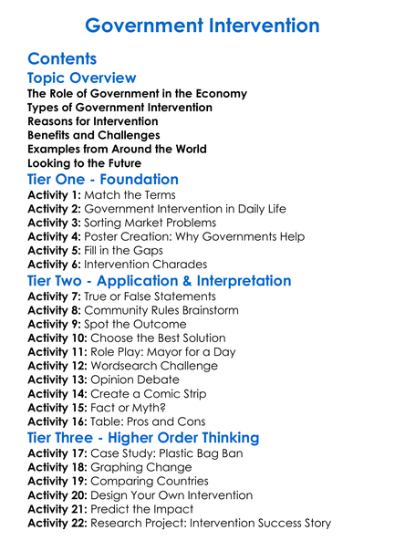 Government Intervention Worksheet Activity Booklet