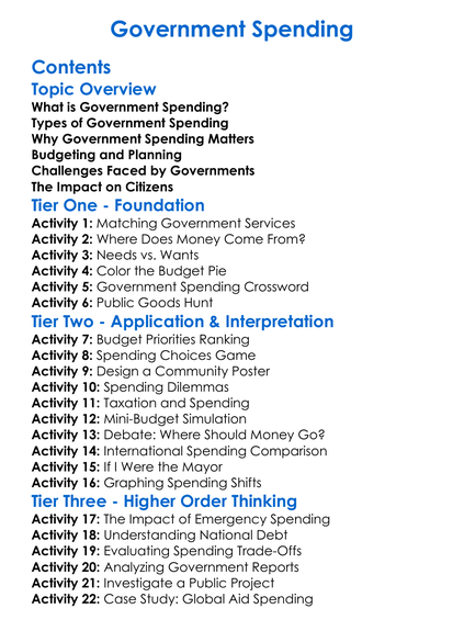 Government Spending Worksheet Activity Booklet