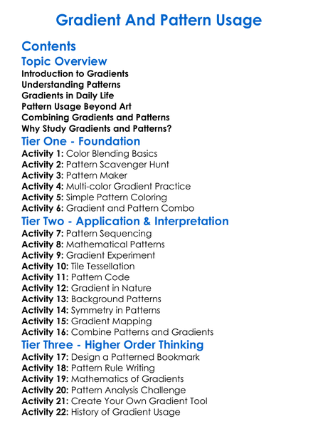 Gradient And Pattern Usage Worksheet Activity Booklet