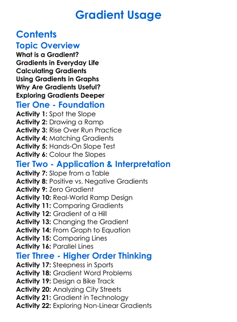 Gradient Usage Worksheet Activity Booklet
