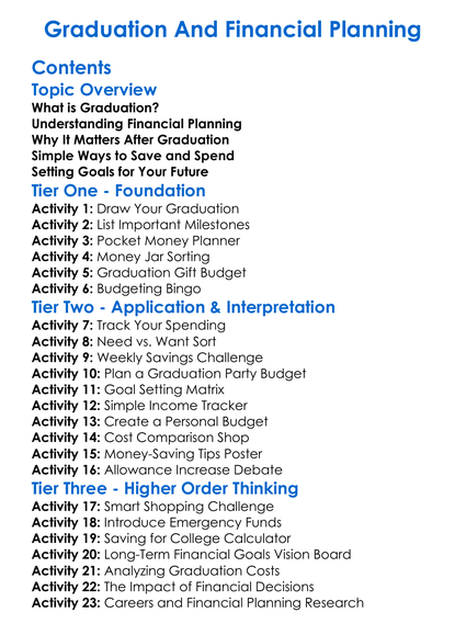 Graduation And Financial Planning Worksheet Activity Booklet