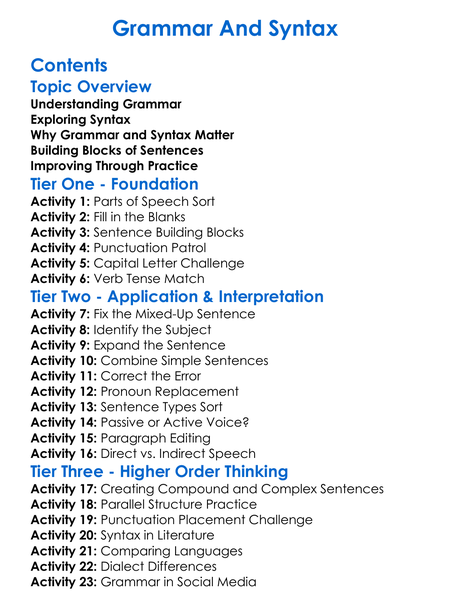 Grammar And Syntax Worksheet Activity Booklet