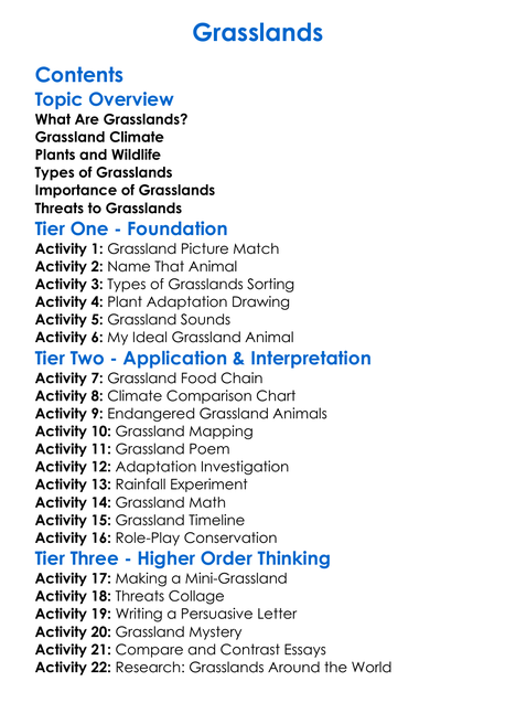 Grasslands Worksheet Activity Booklet