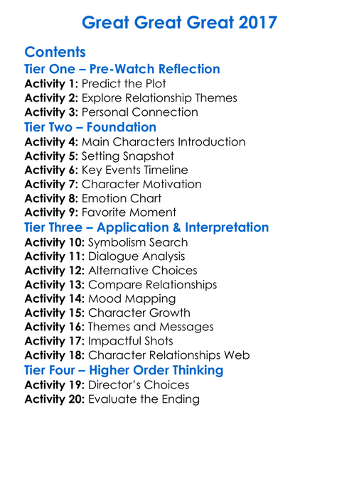 Great Great Great 2017 Worksheet Activity Booklet