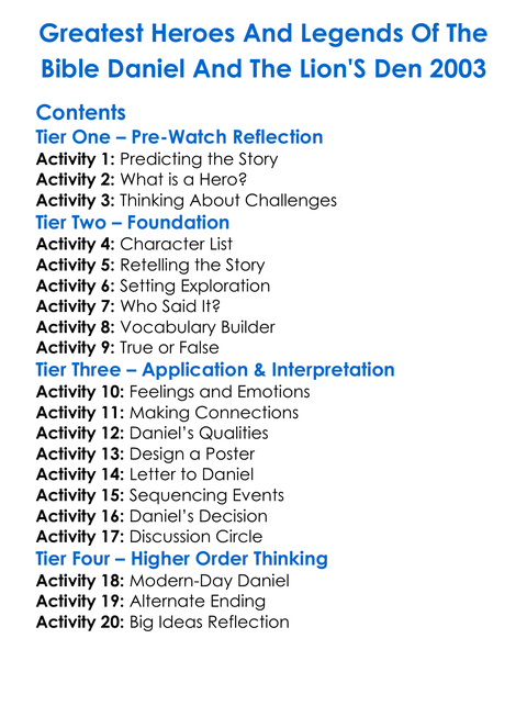 Greatest Heroes And Legends Of The Bible Daniel And The Lions Den 2003 Worksheet Activity Booklet