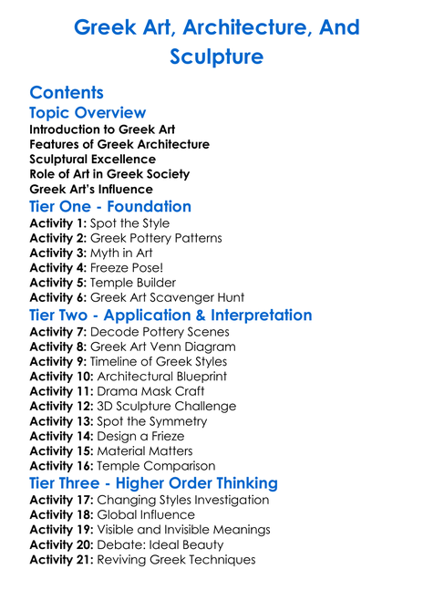 Greek Art Architecture And Sculpture Worksheet Activity Booklet