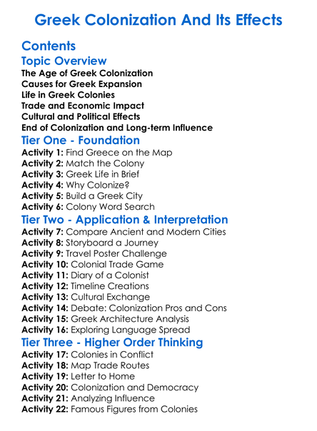 Greek Colonization And Its Effects Worksheet Activity Booklet
