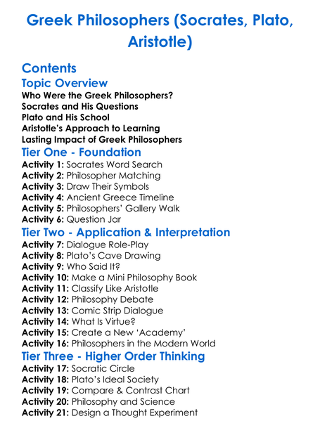 Greek Philosophers Socrates Plato Aristotle Worksheet Activity Booklet