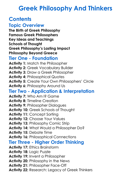 Greek Philosophy And Thinkers Worksheet Activity Booklet